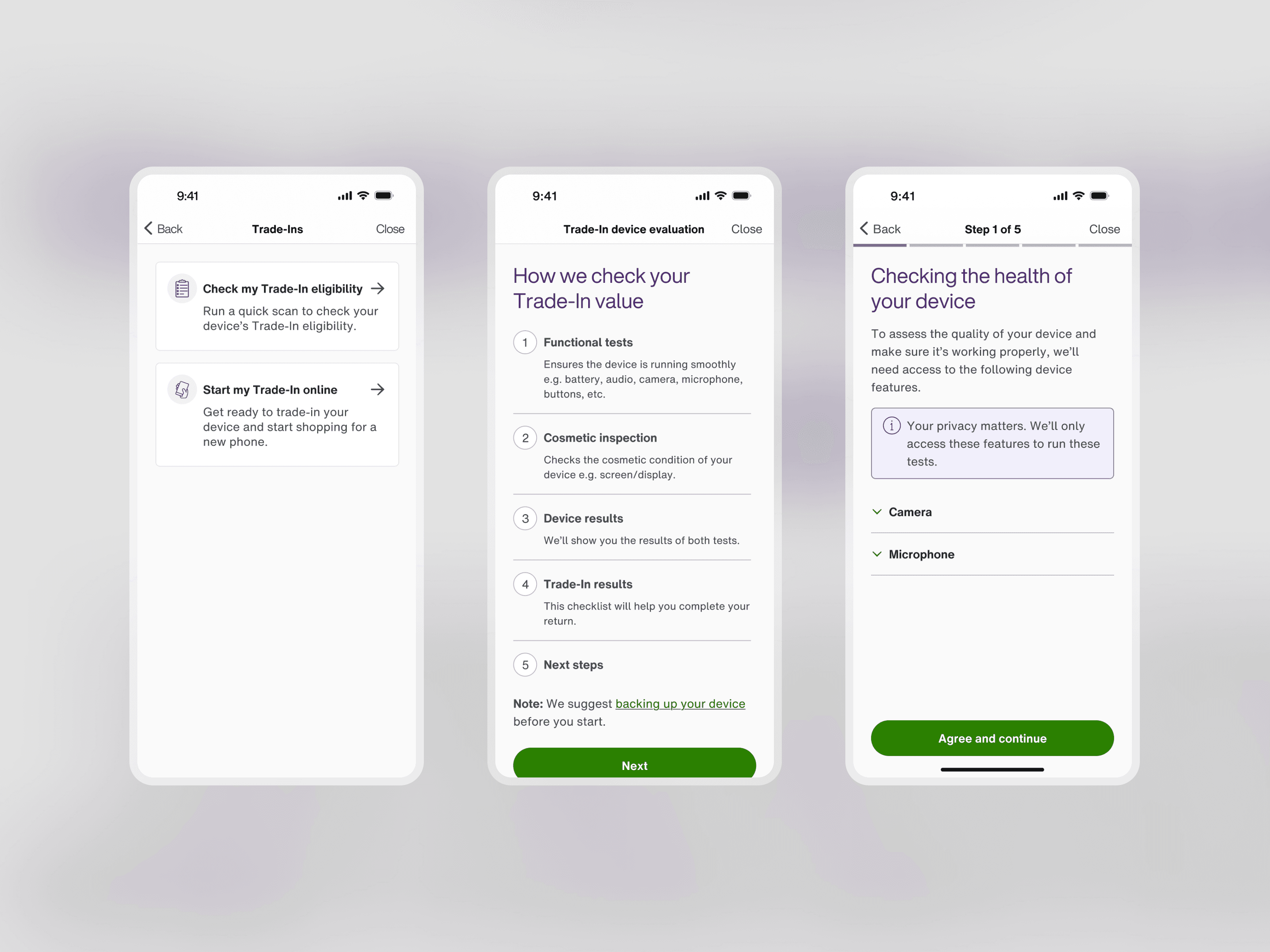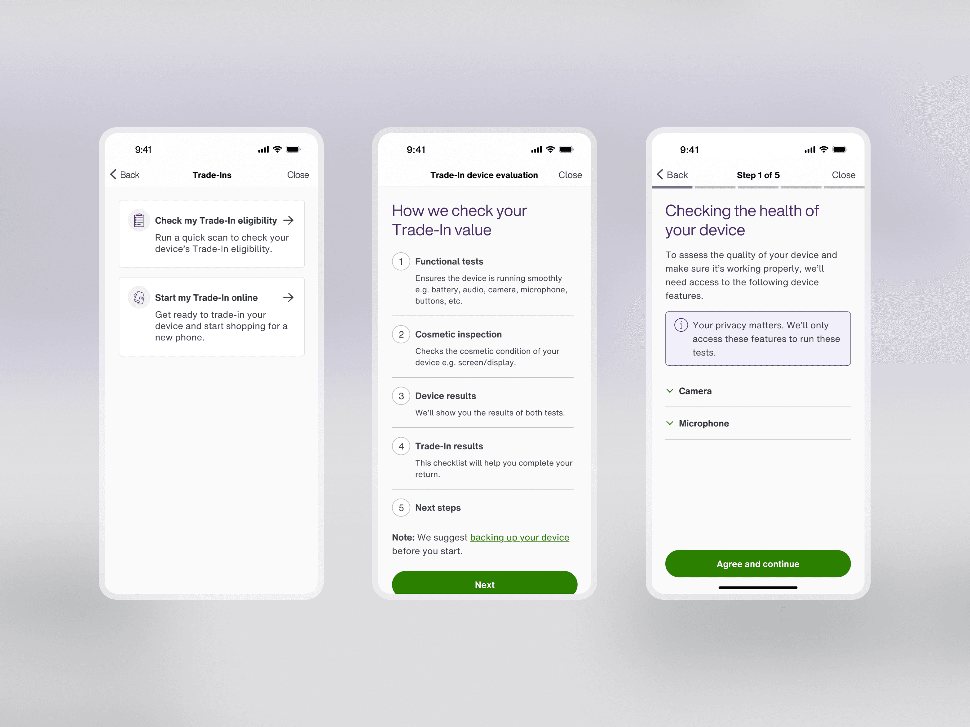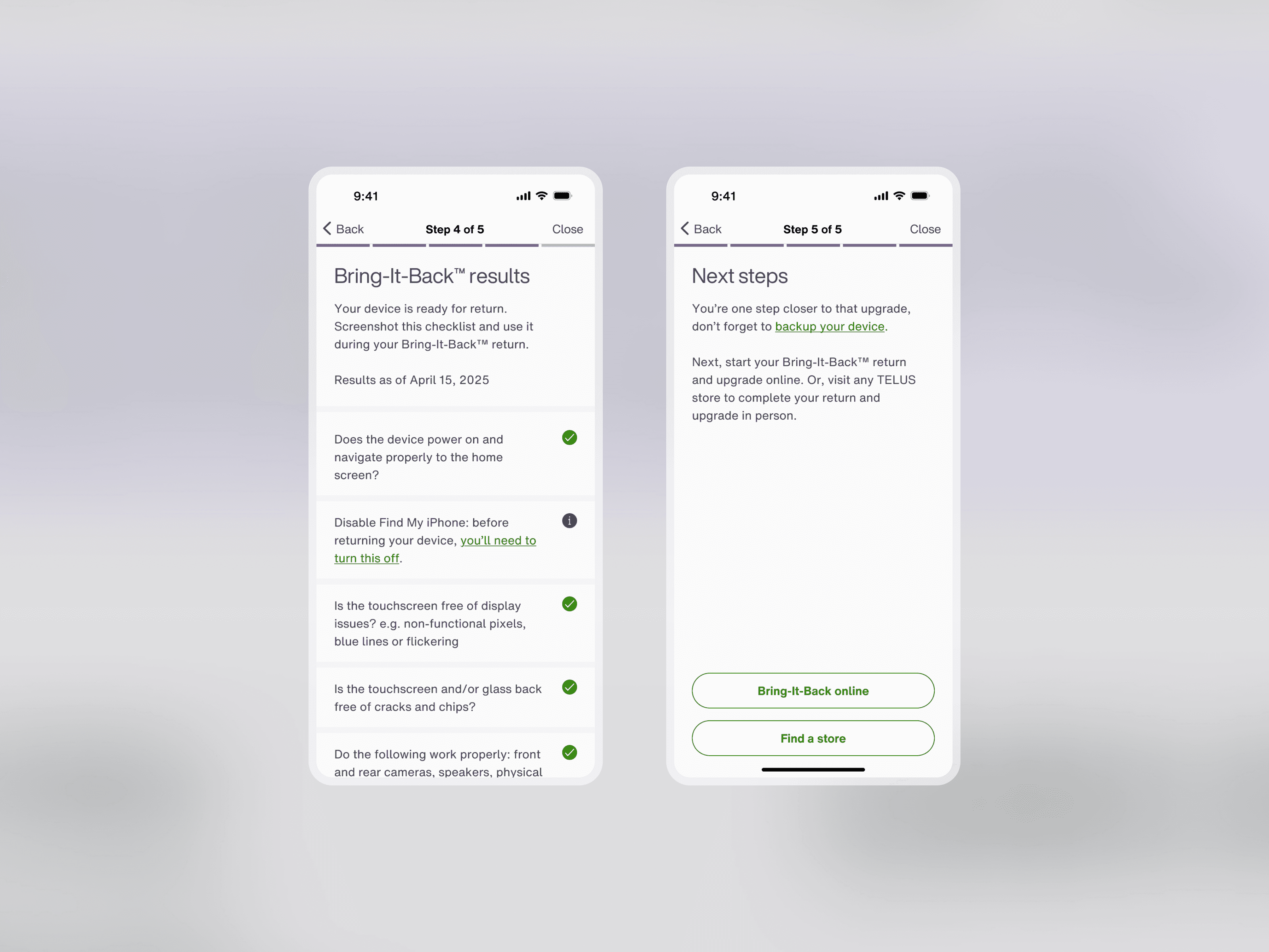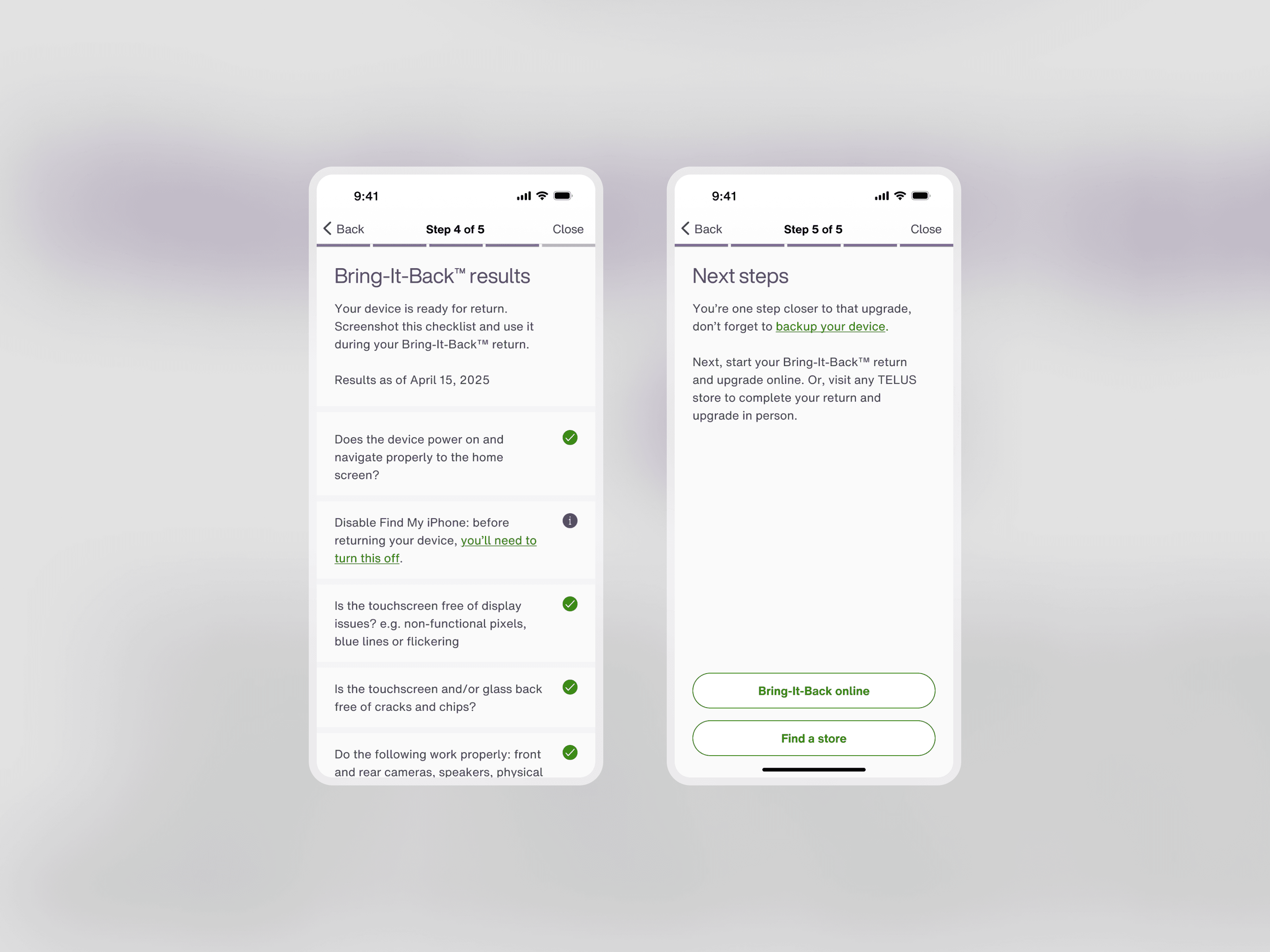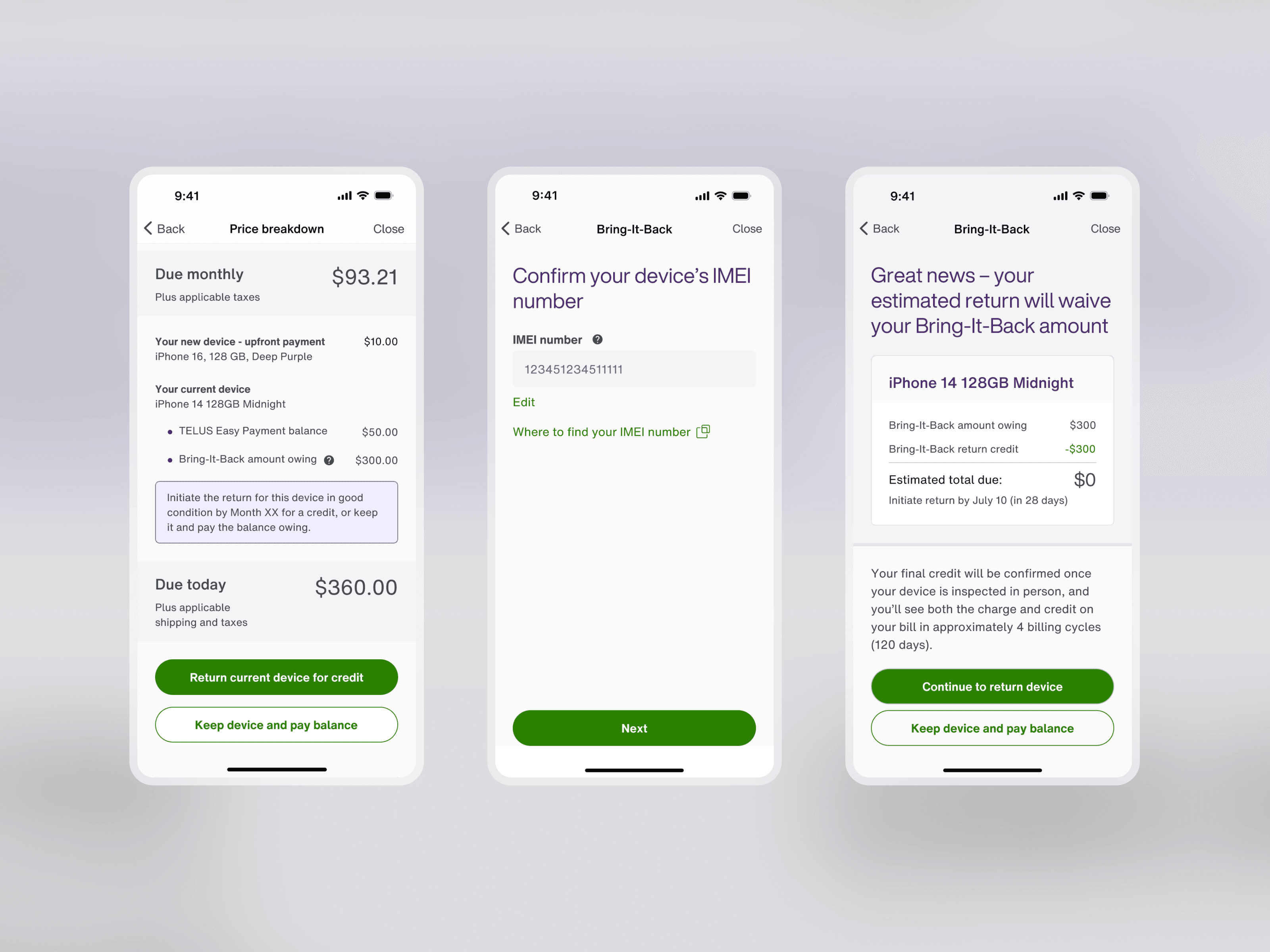 An alternative flow allowing customers to return their device for an phone upgrade credit.