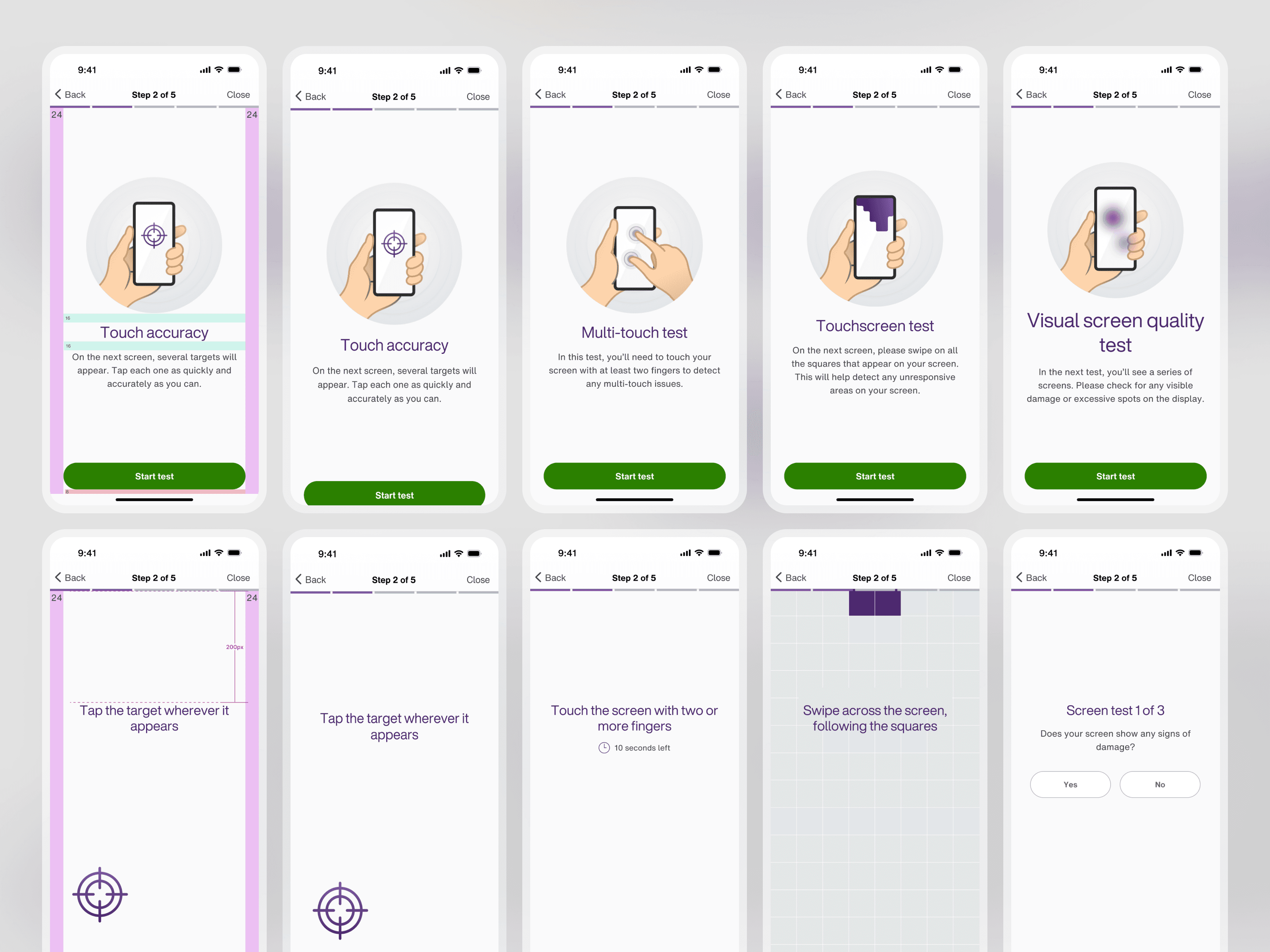 Making a long testing flow simple by surfacing only key information and interactions. Simplification and breathable designs helped make the test feel shorter.