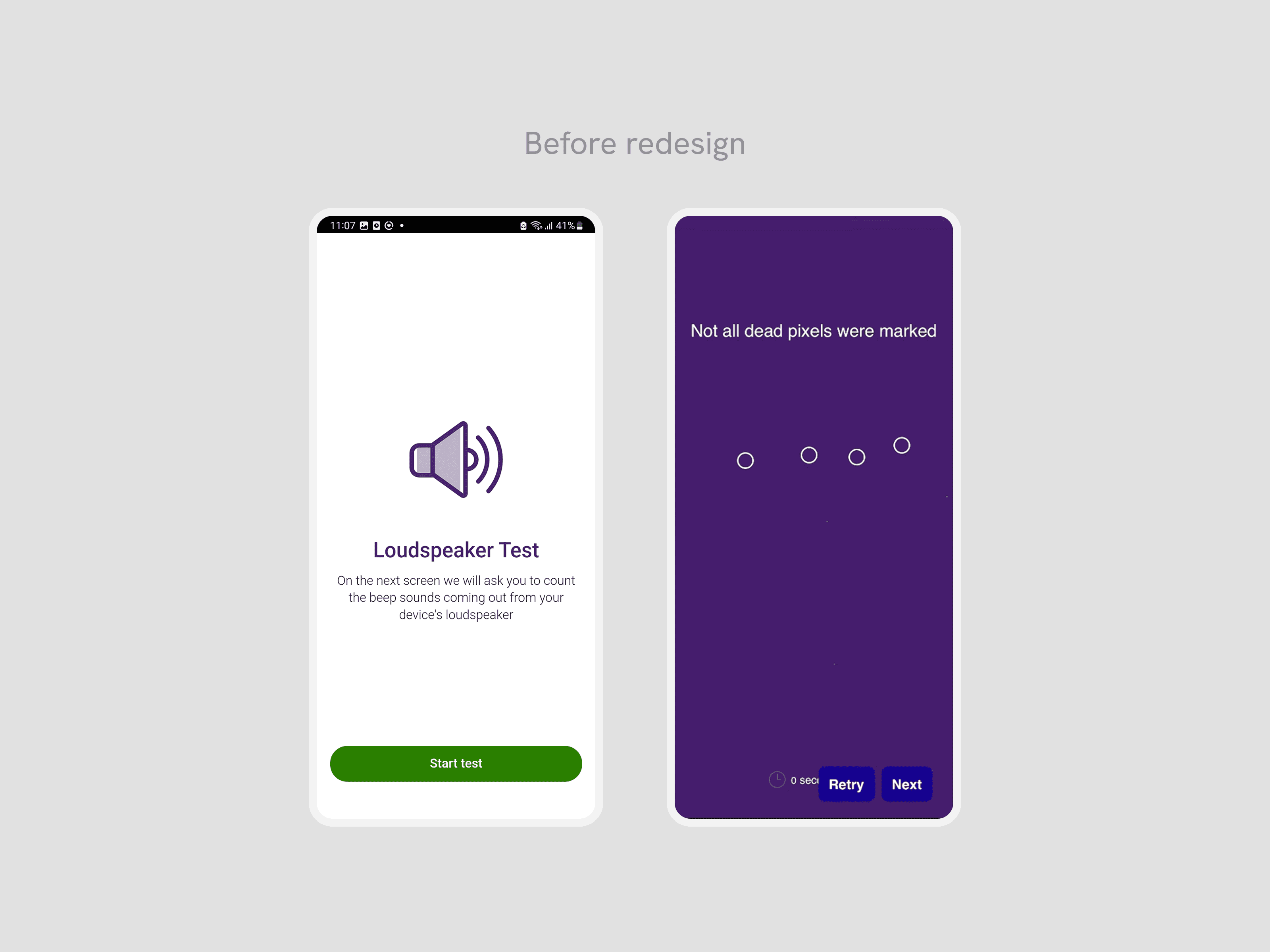 With audio being required for some tests, the app assumes a perfect listening environment and physical ability. In others, the low contrast of buttons and information makes it invisible. By impacting their ability to complete the test, users would be incorrectly assessed for a lower credit, resulting in a poor user experience.